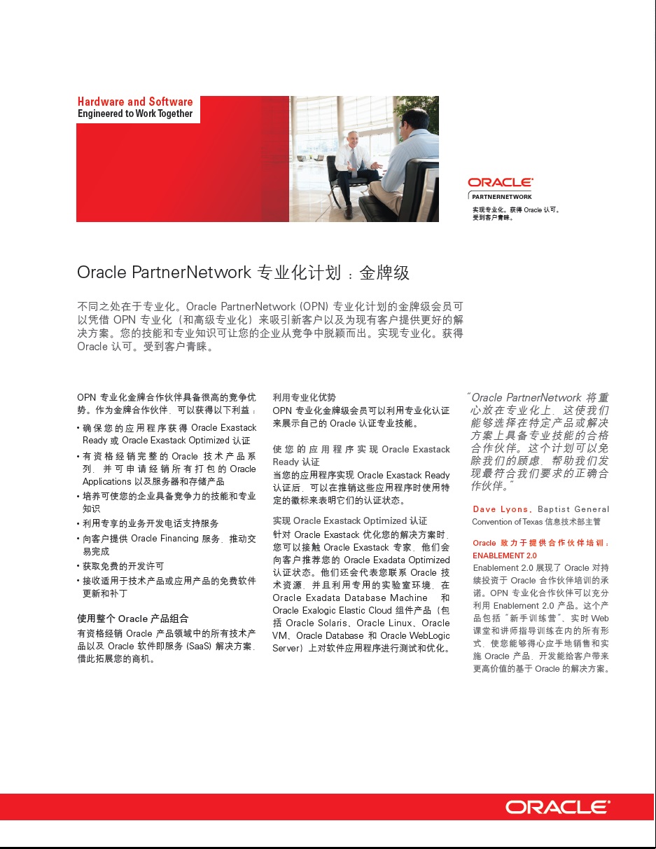 OPN(Oracle Partner Network)即Oracle合作伙伴網(wǎng),是Oracle公司為了幫助各個(gè)行業(yè)用戶應(yīng)用Oracle產(chǎn)品、享受Oracle服務(wù)而打造的網(wǎng)絡(luò)。該網(wǎng)絡(luò)是一個(gè)由超過(guò)20,000家公司組成的全球性業(yè)務(wù)網(wǎng)絡(luò)。這些公司以O(shè)racle軟件為基礎(chǔ),為客戶提供各種創(chuàng)新的解決方案。